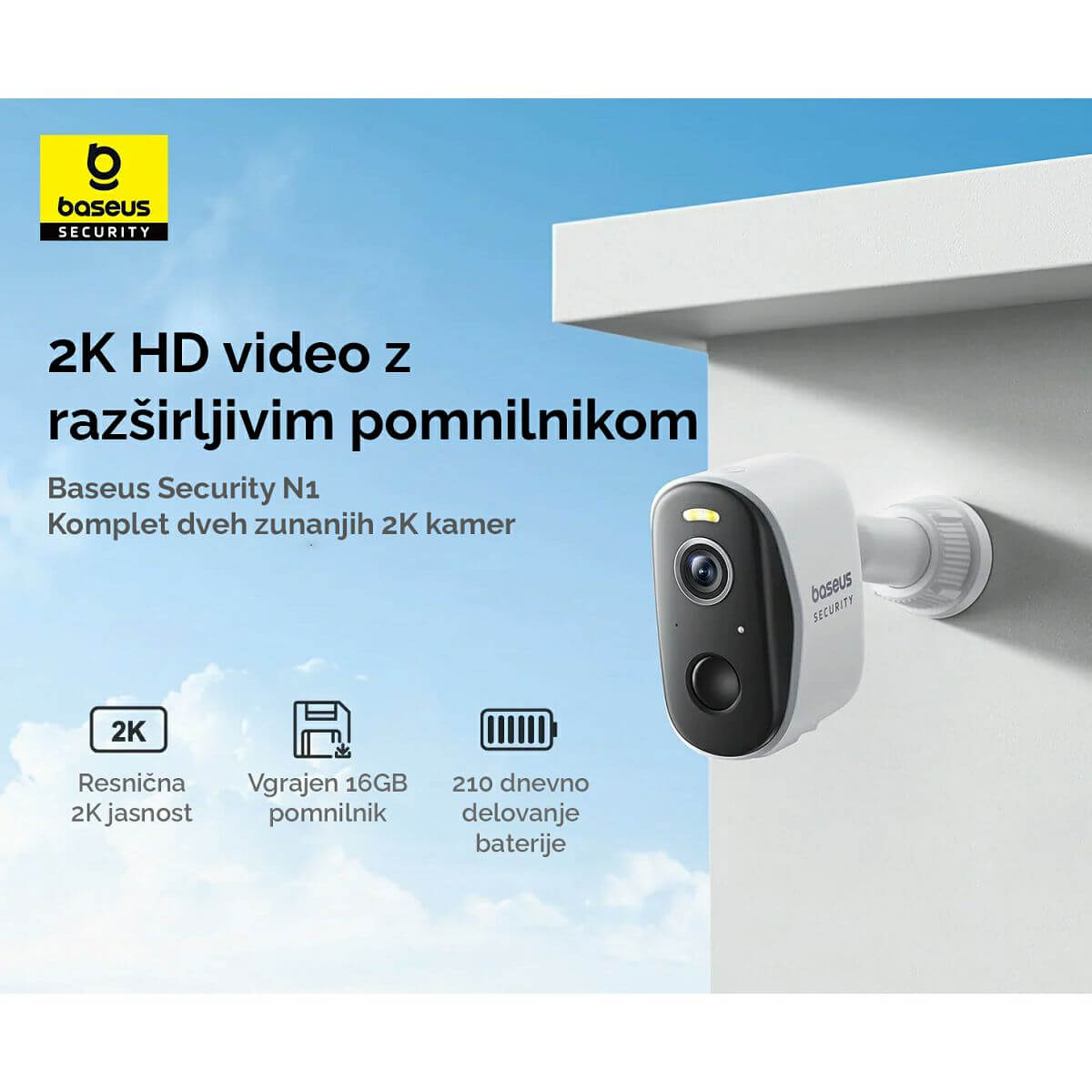 Baseus N1 komplet dveh zunanjih 2K kamer. Spoznajte Baseus N1 Outdoor Security kamero, vašo novo zanesljivo zaščito, ki vam omogoča brezskrbno spremljanje doma ali poslovnih prostorov, ne glede na to, kje se nahajate. Njena zmogljivost in enostavna uporaba vam zagotavljata mirno srce in visoko stopnjo varnosti.