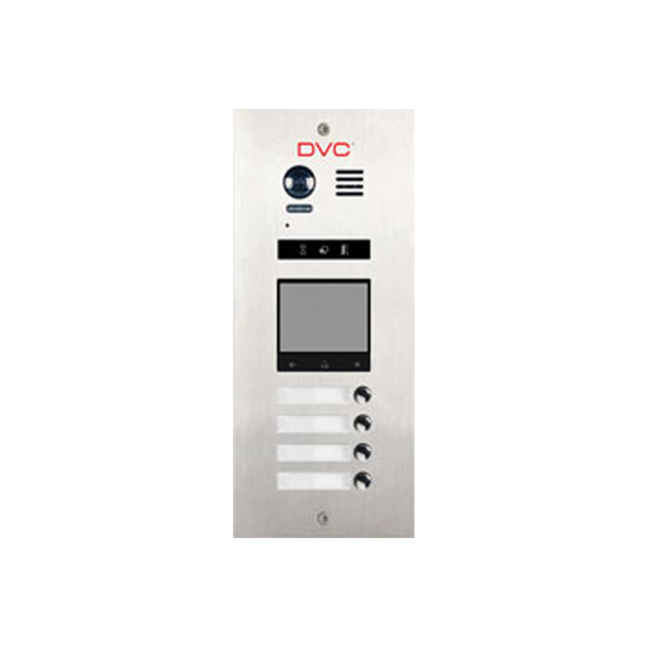 Zunanja video pozivna enota s Fisheye kamero v barvi (170°). 4 pozivne tipke v enem stolpcu in s praznim mestom za modul serije DVC R21 (obvezno dodati vsaj DVC R21/LB ali drug DVC R21 modul).. Napajanje 24 VDC. Napetostni/relejni izhod za ključavnico max. 12 VDC/300mA. Podpira modul DVC DT-RLC. Podometna vgradnja.