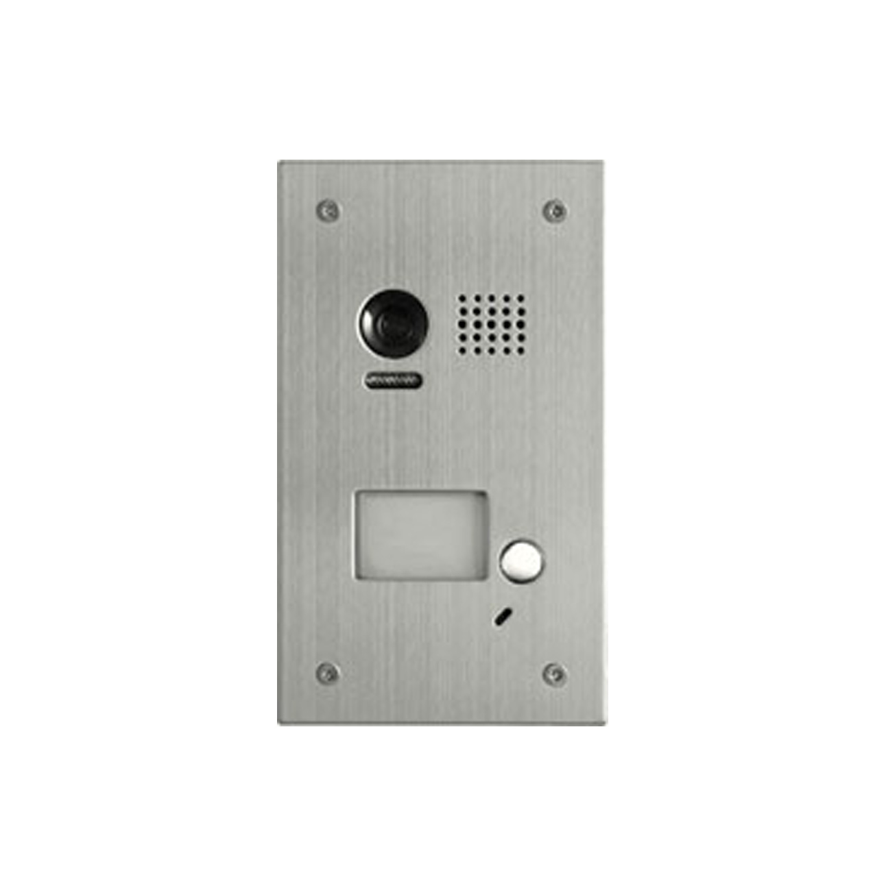 Zunanja pozivna enota s širokokotno barvno kamero s Fisheye – 170°, 650TVL in 1 pozivno tipko. Izvedba iz nerjavečega jekla. Odpornost po standardu IP54 . Namenjena podometni vgradnji (doza v kompletu).
