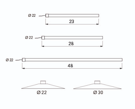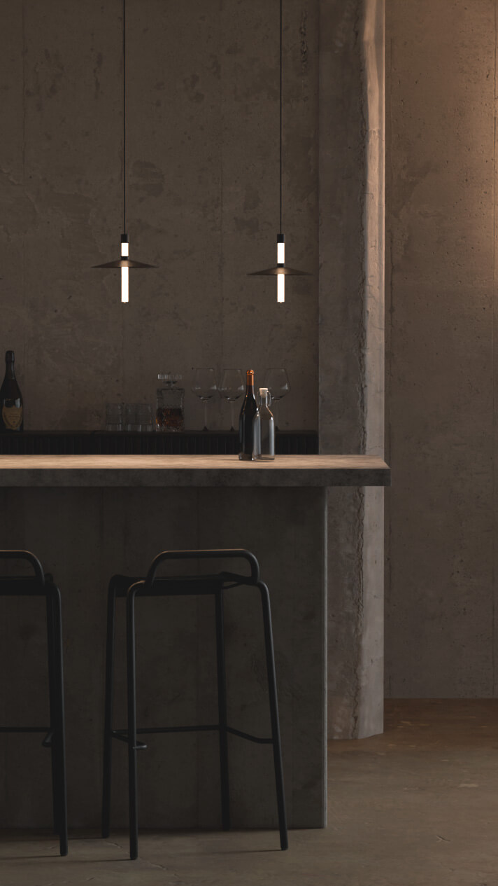 Na voljo v štirih različnih dolžinah, ki jih dopolnjuje senčnik v dveh velikostih, kar omogoča neskončne kombinacije barv, velikosti in položajev na svetlobni cevi, to pa ustvarja neposredne in posredne svetlobne učinke.