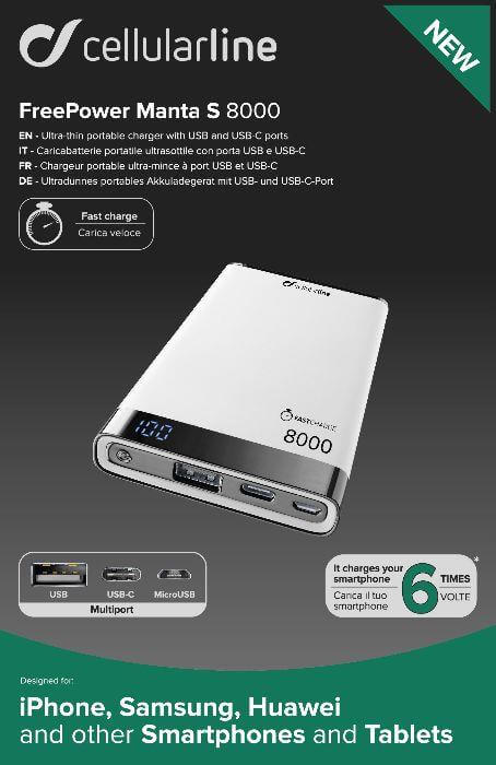 Polnilna postaja Manta S 8000mAh je tanka in hitra polnilna baterija, narejena iz litij polimernih celic in opremljena z dvojnim hitrim polnjenjem in brezžičnim USB polnilnim vhodom, narejenim s tehnologijo Qi, tako da je odličen za brezžično polnjenje vseh združljivih naprav.